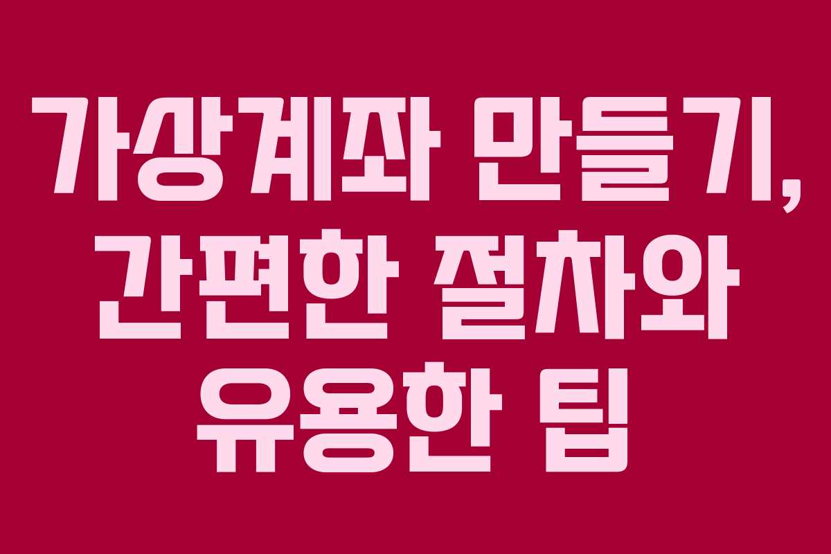 가상계좌 만들기, 간편한 절차와 유용한 팁