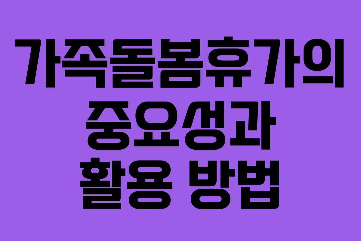 가족돌봄휴가는 근로자가 가족을 돌보는 데 필요한 시간을 보장합니다. 이를 통해 가족 구성원 간의 유대감을 강화하고, 긴급 상황에서 필요한 지원을 제공할 수 있습니다.