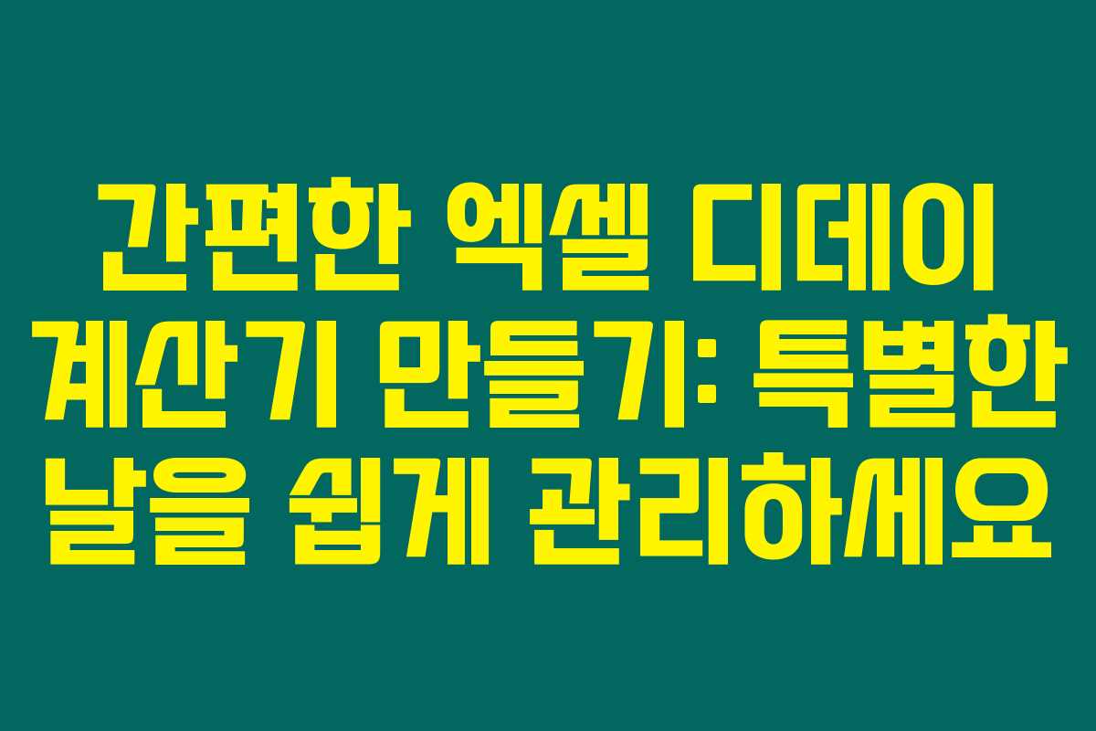 만약 소중한 기념일이나 중요한 날짜를 잊어버리면 어쩌죠? 중요한 날을 쉽게 관리하고 싶은 분이라면, 아래의 내용을 잘 읽어보세요. 엑셀로 간편하게 디데이 계산기를 만들 수 있는 방법을 소개합니다. 이 방법을 통해 남은 날을 쉽게 관리할 수 있으니, 필요하면 꼭 따라 해보세요!