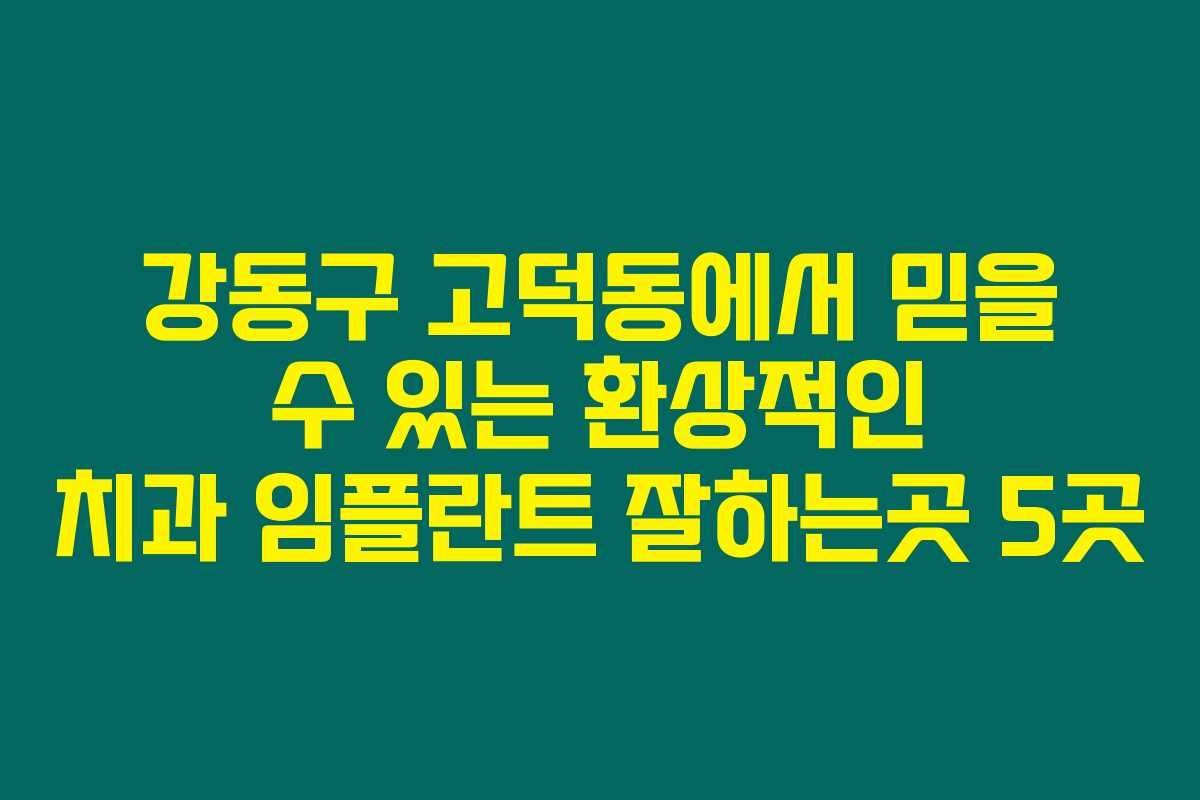 제가 직접 체크해본 바로는 고덕동 지역에는 임플란트 치료를 전문적으로 하는 치과들이 많습니다. 치아 건강은 우리의 전반적인 건강과 삶의 질에 큰 영향을 미치기에, 적절한 시술을 위해 전문 치과를 선택하는 것이 무엇보다 중요해요. 아래를 읽어보시면, 고덕동에서 임플란트 치료를 잘 하는 치과 5곳과 그들의 가격, 후기, 지원금 정보에 대한 내용을 자세히 다뤄보겠어요.