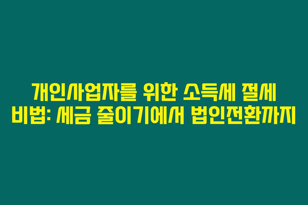 개인사업자를 위한 소득세 절세 비법: 세금 줄이기에서 법인전환까지