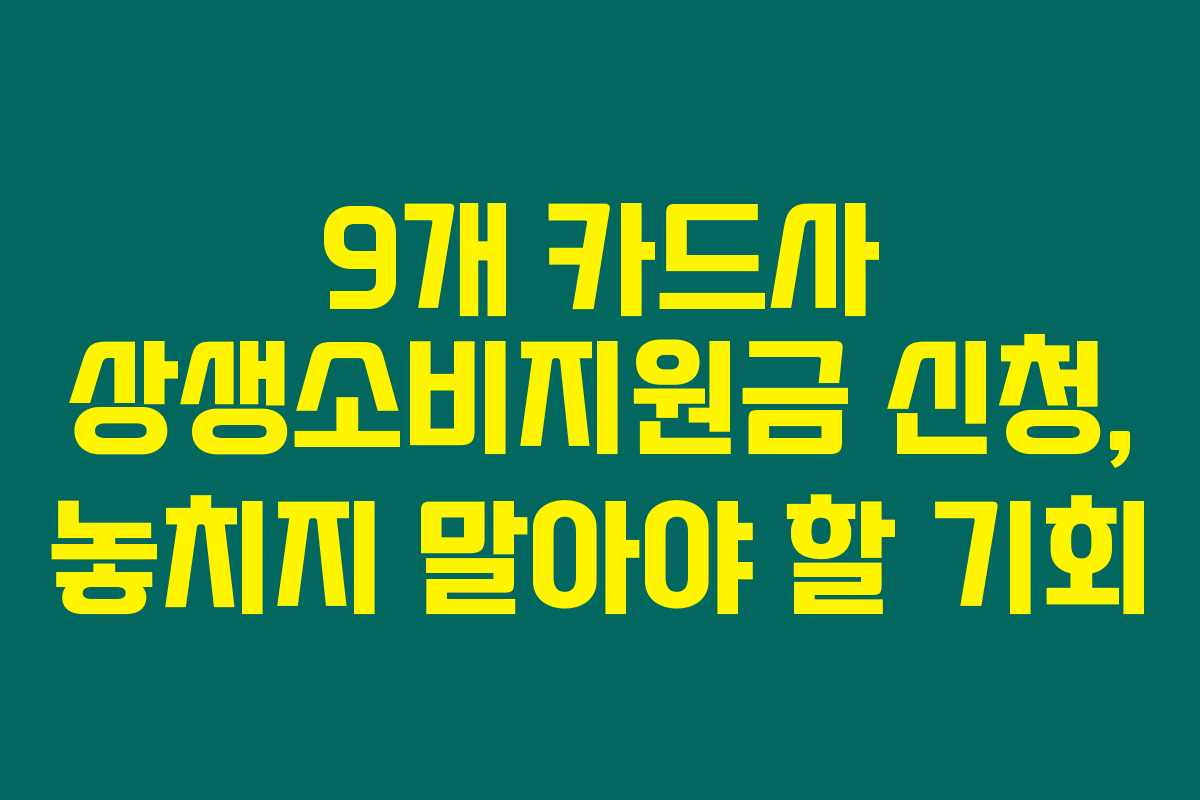 상생소비지원금을 신청하려는 당신이라면 아래 정보를 꼭 확인해야 할 거예요. 다양한 카드사에서 신청할 수 있는 이 제도는 소비자에게 큰 도움이 되니까요. 9개 카드사별 지원금 신청 방법과 channels를 정리해 보았습니다.