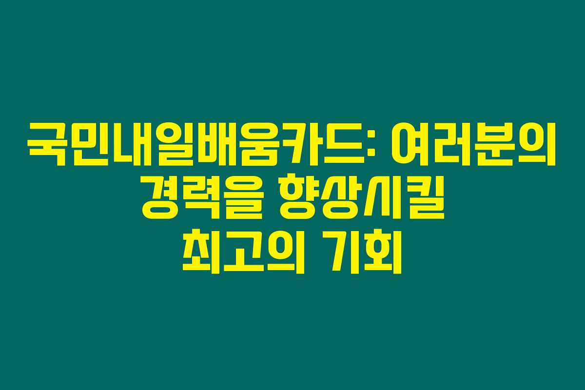 국민내일배움카드는 여러분의 경력을 쌓고 직업 능력을 향상시키기 위한 유용한 도구라는 점을 잊지 마세요. 여러분의 미래를 위한 투자, 국민내일배움카드와 함께하세요!