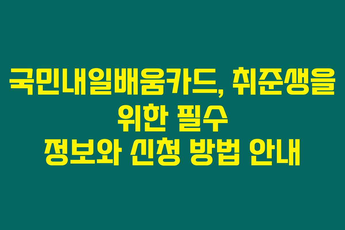 제가 직접 경험해본 결과로는, 국민내일배움카드는 취업 준비생에게 큰 도움이 되는 제도에요. 직무 훈련을 받을 때 필요한 비용을 지원받을 수 있어서 훈련 기관에 접근하기가 훨씬 수월해지더라고요. 아래를 읽어보시면 이 카드의 자격, 신청 방법, 훈련 기관 조회 방법 등에 대해 더 상세히 알 수 있을 거예요.