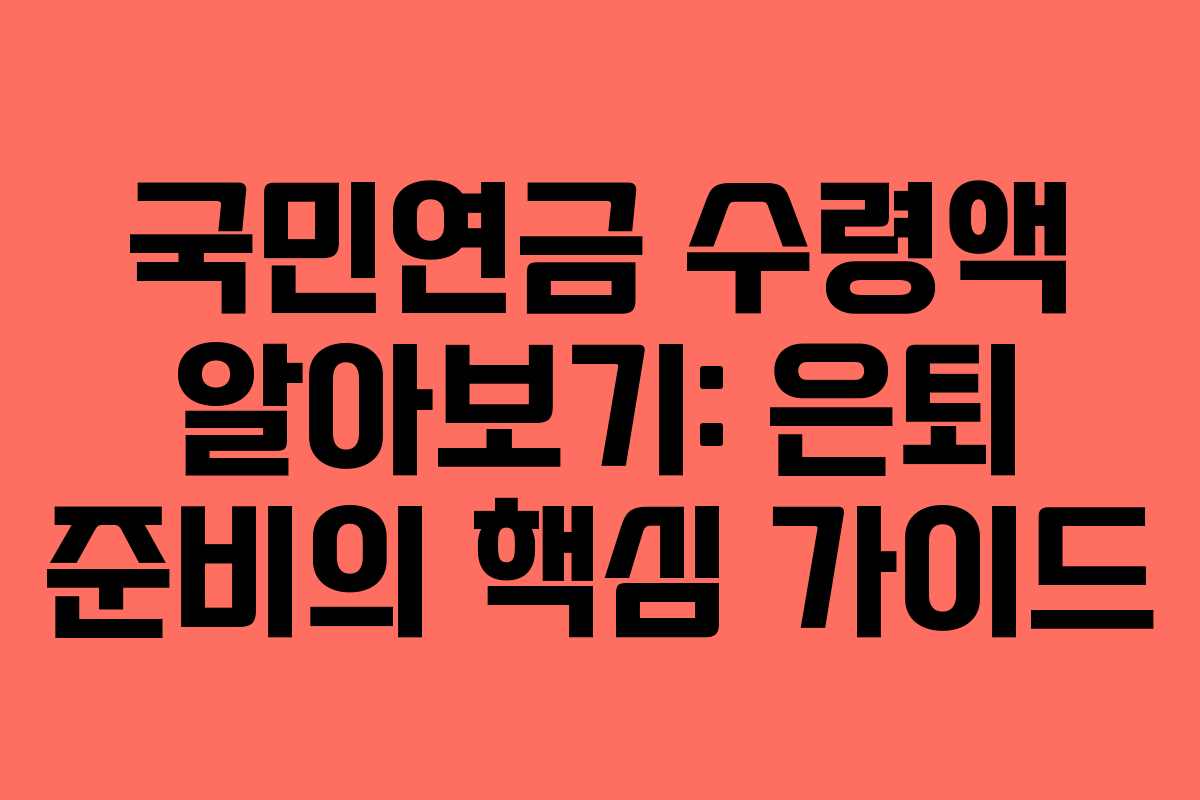 국민연금 수령액 알아보기: 은퇴 준비의 핵심 가이드