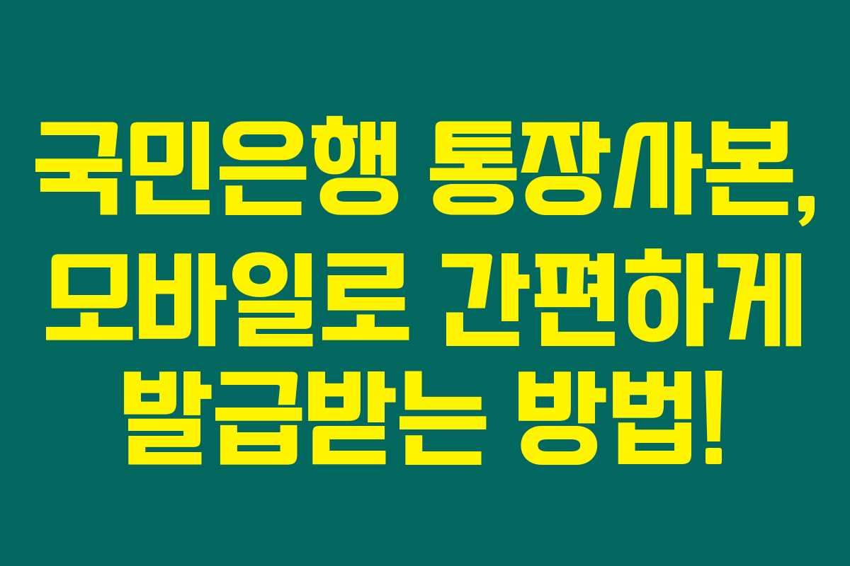 모바일 시대에 따라 종이 통장사본을 출력해 보내는 일이 드물어졌죠. 이제 국민은행 통장사본도 모바일로 간편하게 발급받아 사용할 수 있는 방법이 있습니다. 아래를 읽어보시면 국민은행의 KB스타뱅킹 앱을 통해 통장사본을 쉽게 발급받고, 필요한 곳에 즉시 공유하는 과정을 살펴볼 수 있습니다.