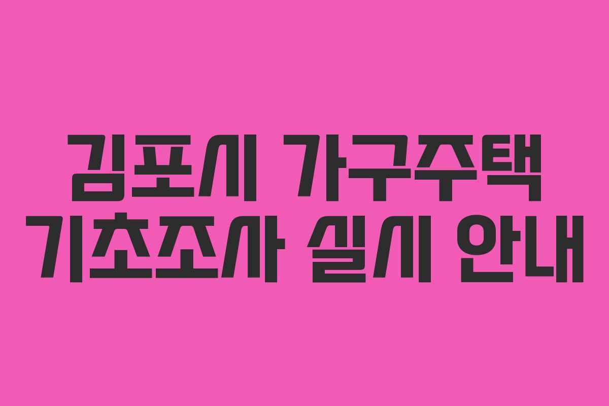가구주택 기초조사는 김포시의 정책 수립에 중요한 기반이 됩니다. 이번 조사를 통해 수집된 데이터는 향후 다양한 정책 결정에 활용될 예정입니다.