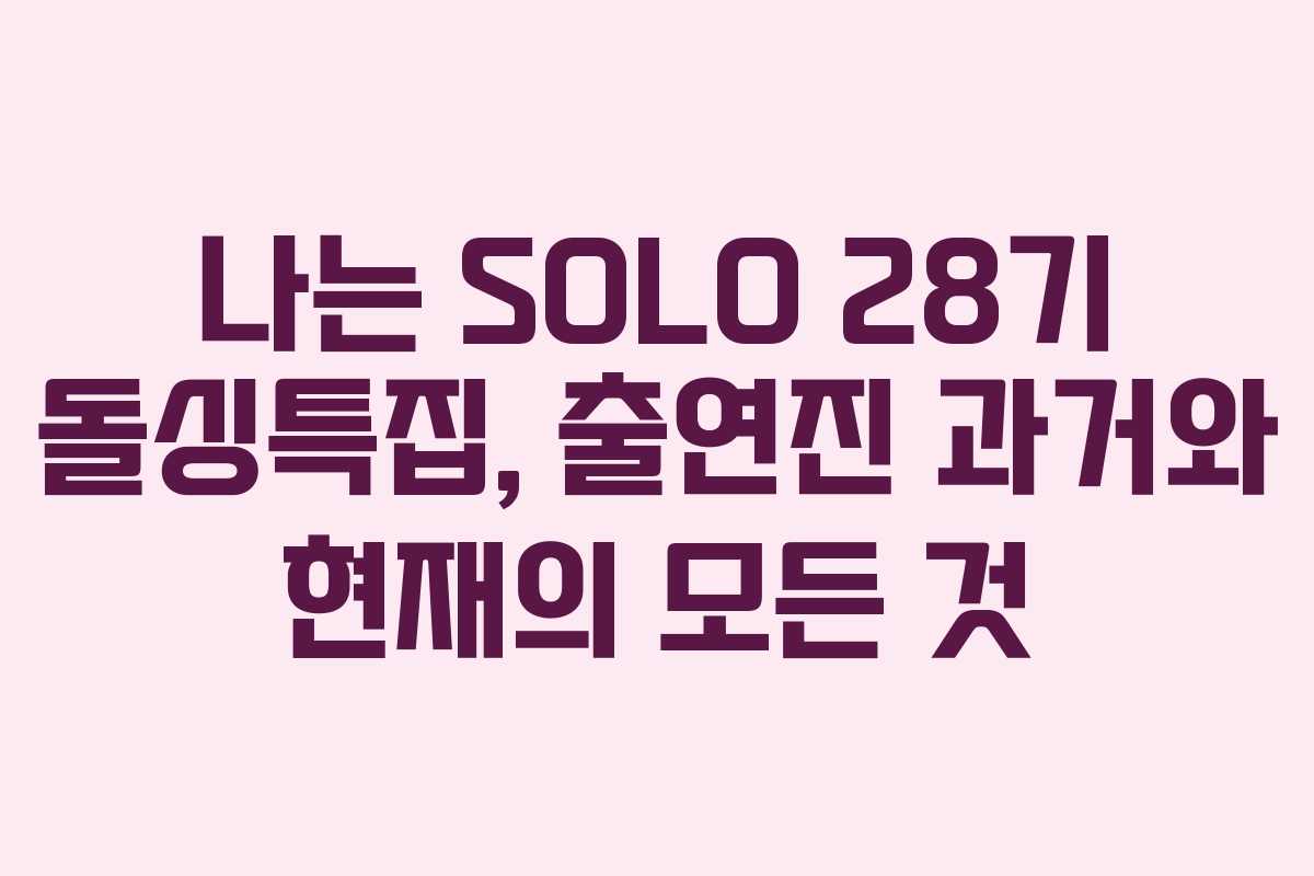 ‘나는 SOLO’ 28기 돌싱특집이 시작되면서 출연자들의 과거에 대한 관심이 폭발적으로 증가하고 있습니다. 이번 기수는 방송 전부터 시청자들의 궁금증을 자아내는 여러 소문과 폭로로 가득 차 있습니다. 출연자들이 과연 새로운 사랑을 찾을 수 있을지, 그들의 이야기를 깊이 있게 살펴보겠습니다.