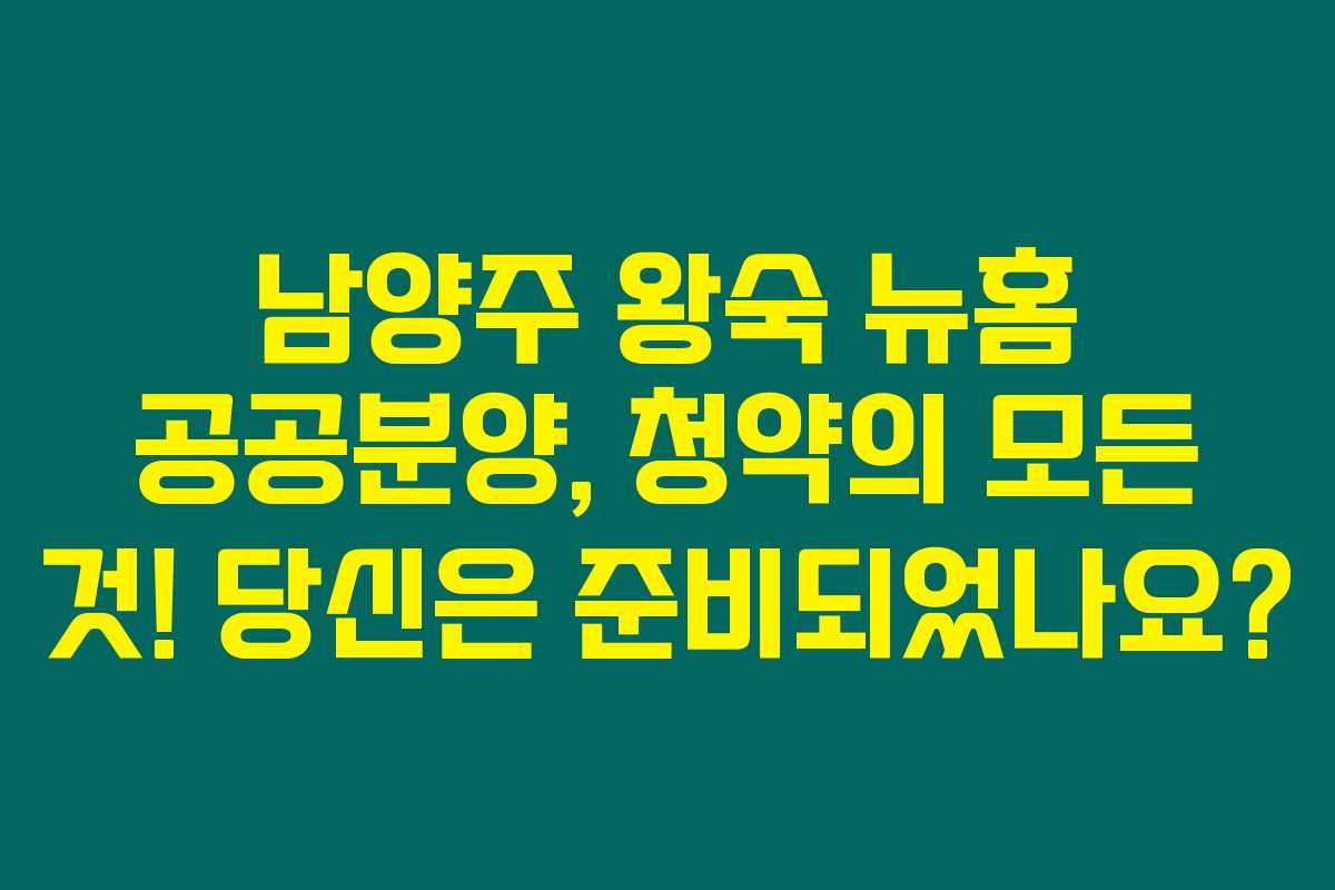 남양주 왕숙의 공공분양을 고려하고 있다면, 꼭 알고 있어야 할 정보들이 많답니다. 이 글에서는 남양주 왕숙의 사전청약 분양가와 일정, 자격 조건을 한눈에 모두 정리해 드릴게요. 주택 청약을 고민하는 분들이라면, 이번 기회를 놓치지 마세요!