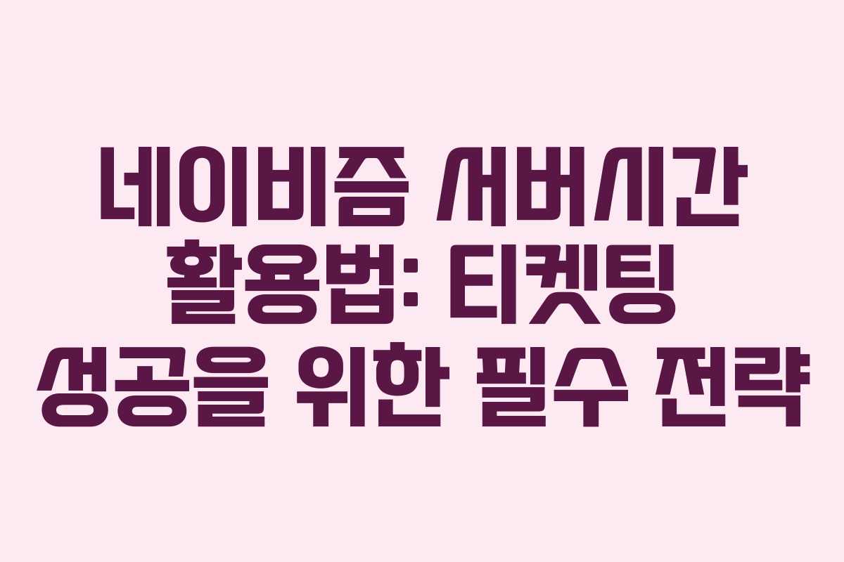 티켓팅에서 성공하기 위해 네이비즘 서버시간을 활용하는 것은 필수적입니다. 콘서트, 뮤지컬, 수강신청 등에서 경쟁이 치열한 선착순 예매에서 한 발 앞서기 위한 방법을 알아보겠습니다.