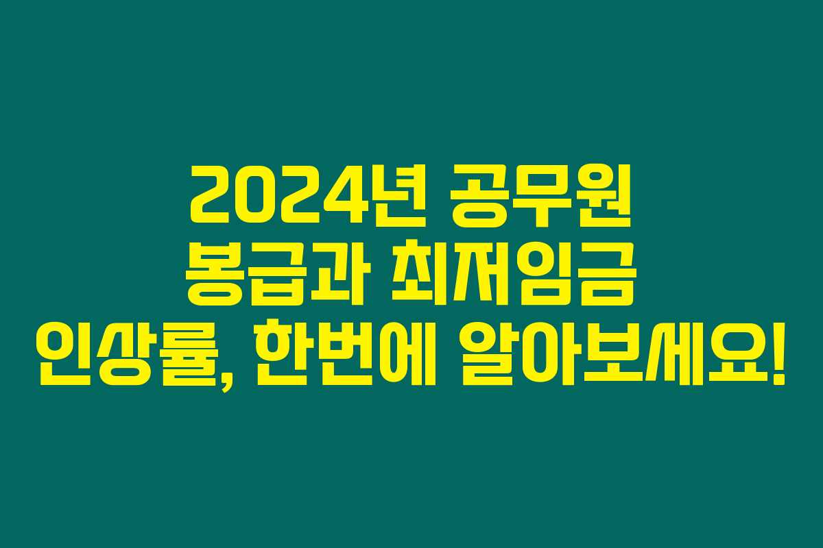 아래를 읽어보시면, 2024년도 공무원 봉급 인상률과 최저임금 인상률에 대해 자세히 알려드립니다. 제가 직접 경험해본 결과로는, 올해는 공무원 봉급이 다소 향상되었으며, 최저임금도 인상되어 다양한 변화가 있었다는 것을 알게 되었어요.