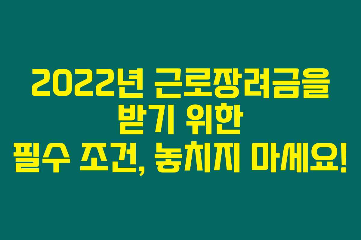 제가 직접 경험해본 결과로는, 2022년 근로장려금 신청 자격에 대한 이해와 준비가 정말 중요하답니다. 이 정보를 바탕으로 신청을 놓치지 않도록 미리 자격을 확인하고 준비하시면 좋겠습니다. 빨리 신청해서 누릴 수 있는 혜택을 받으시길 바라요!