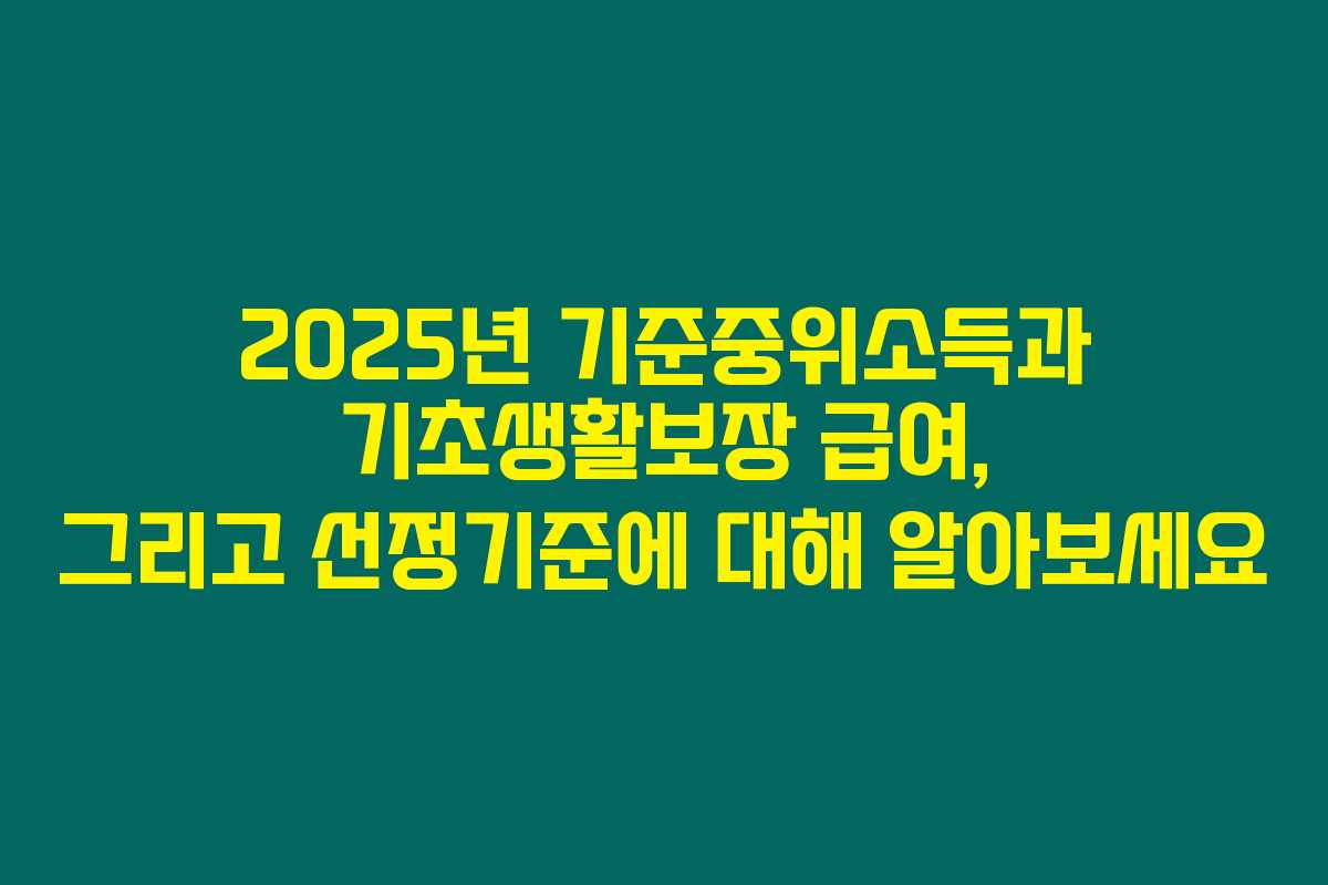 제가 직접 리서치한 바로는 2025년 기준중위소득과 기초생활보장 급여 선정기준은 많은 사람들에게 중요한 정보입니다. 기준중위소득은 정부의 복지정책 선정의 중요한 기준으로 활용되며, 기초생활보장 급여는 저소득층을 위한 기본적인 지원으로 꼭 알아둬야 할 내용입니다. 아래를 읽어보시면 이와 관련된 핵심 정보를 한눈에 확인하실 수 있습니다.