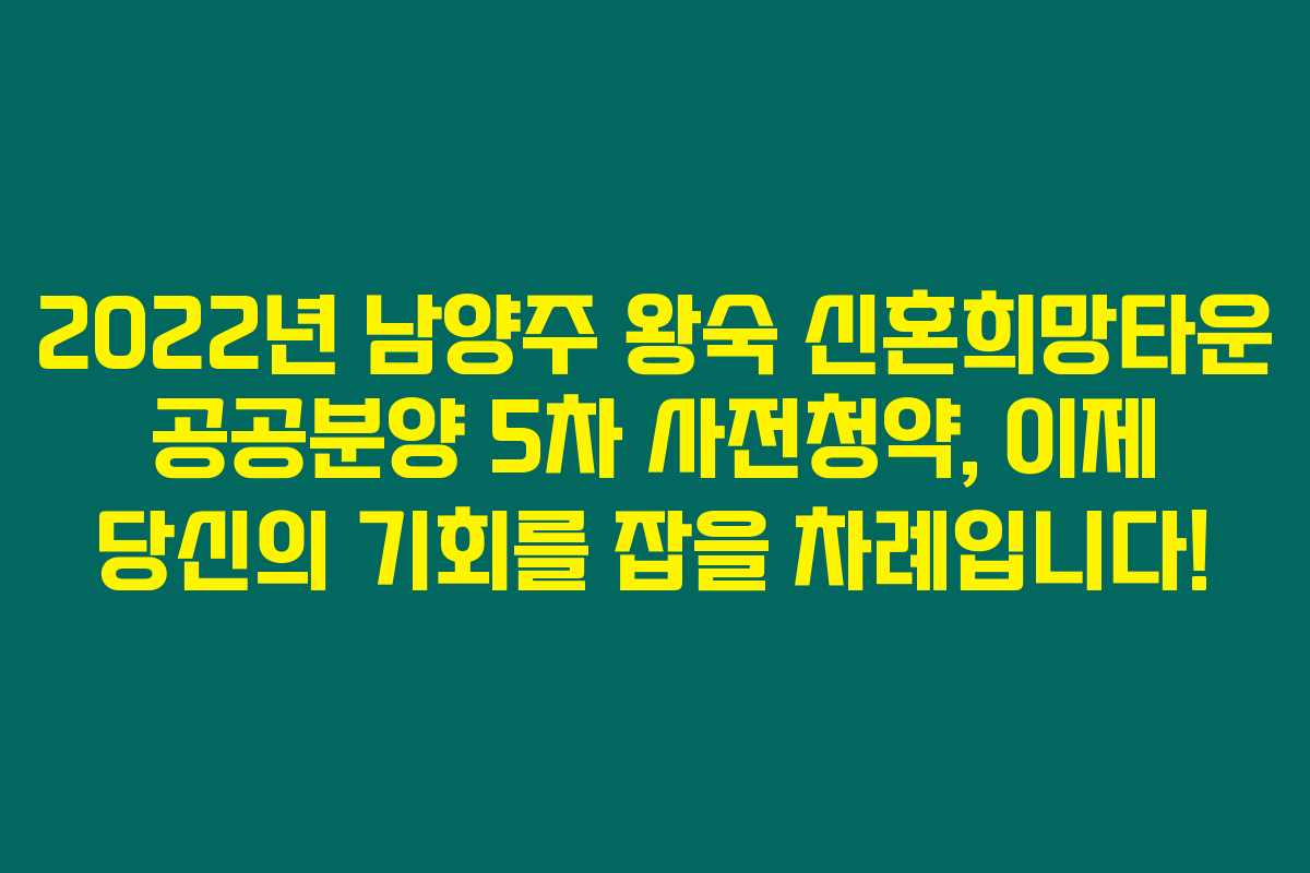 2022년 남양주 왕숙 신혼희망타운 공공분양 5차 사전청약에 대해 궁금하시다면 주목해 주세요. 신혼부부들의 내 집 마련을 위한 좋은 기회가 찾아왔습니다. 신혼부부, 예비 신혼부부, 그리고 한부모 가족까지 신청 자격이 주어지니 이 기회를 놓치지 마세요. 아래에서는 사전청약의 조건과 절차, 공급 계획 등을 자세히 안내해 드리니 아래를 읽어보시면 많은 도움이 될 거예요.