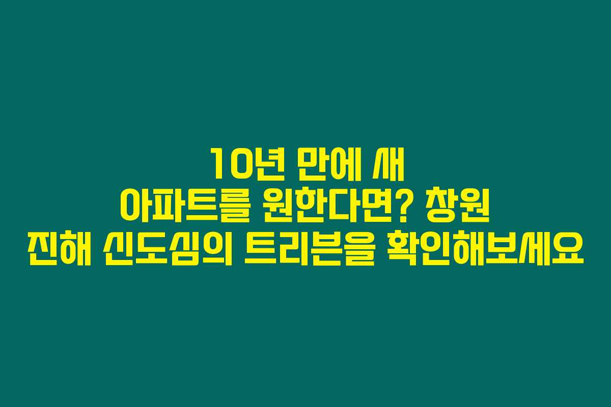 10년 넘게 기다려온 창원 진해 신도심에서 새 아파트가 드디어 분양됩니다. 만약 당신이 창원 지역의 새 아파트를 찾고 있다면 아래를 읽어보시면 두산에너빌리티가 선보이는 트리븐 창원이 어떤 매력을 담고 있는지 알 수 있어요. 신도심의 매력과 투자 가치를 놓치지 마세요!
