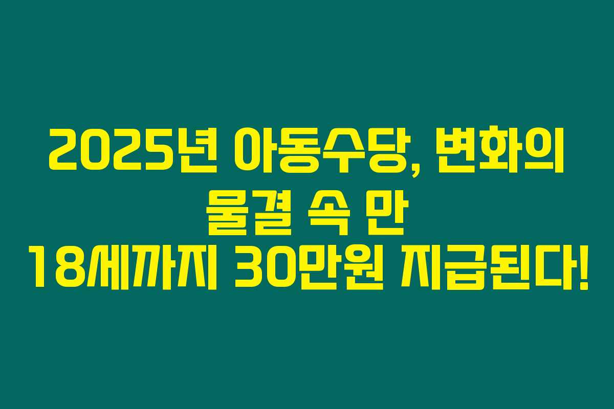 제가 직접 알아본 바로는 2025년부터 아동수당이 대폭 확대된다고 해요. 만 18세까지 지원되는 아동수당이 최대 30만원으로 늘어난다는 소식은 정말 반가운 소식이지요. 우리 아이들의 미래를 생각하는 정부의 결단이 아닌가 싶어요. 아래를 읽어보시면 아동수당의 변화와 함께 그 의미에 대해 자세히 알아볼 수 있을 거에요.
