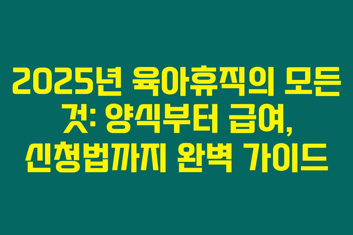 아래를 읽어보시면 2025년 육아휴직에 대한 모든 정보를 쉽게 이해하고 활용할 수 있을 것입니다. 제가 직접 경험해본 내용과 함께 2025년 육아휴직계 양식, 신청 절차, 급여, 그리고 기간에 대한 정보를 상세히 정리하였으니, 꼭 참고해보세요.