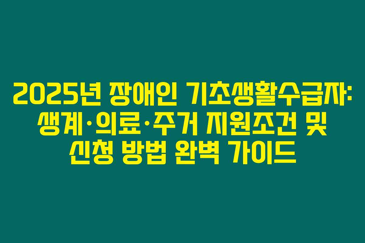 2025년, 장애인 기초생활수급자에 대한 지원 제도는 다음과 같은 특징을 가지고 있습니다: