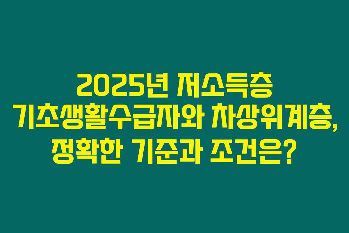 제가 알아본 바로는, 현재 많은 사람들이 복지 혜택에 대한 정보가 부족하여 지원을 받지 못하고 있는 현실입니다. 특히 2025년은 저소득층과 기초생활수급자, 차상위계층에 대한 기준이 변화하고 있는 시기인데요. 아래를 읽어보시면, 저소득층, 기초생활수급자, 차상위계층의 정확한 조건과 혜택에 대해 상세히 알아볼 수 있습니다.