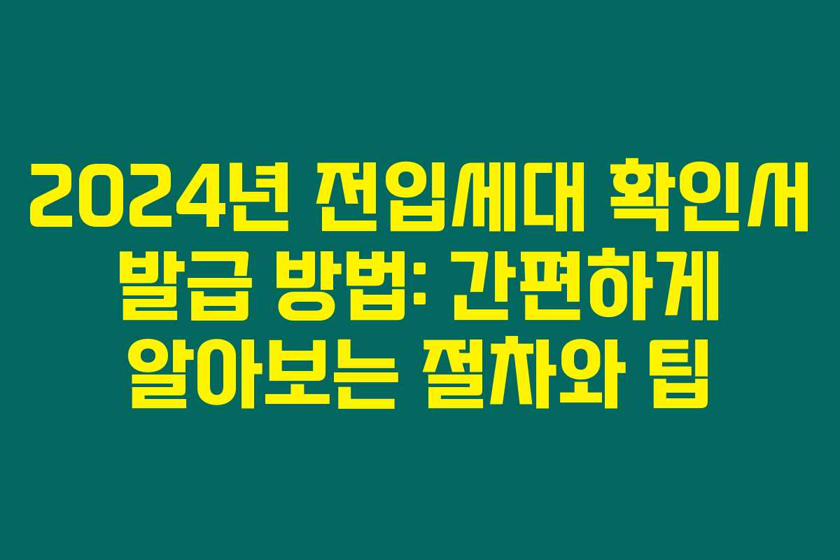 2024년 전입세대 확인서 발급 방법: 간편하게 알아보는 절차와 팁