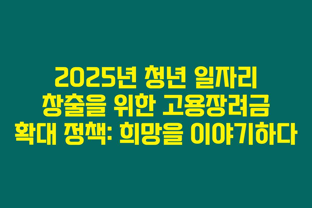 제가 직접 리서치한 바로는, 2025년 청년 일자리 창출을 위한 고용장려금 확대 정책은 청년들에게 새로운 기회를 제공하고 기업에게는 인건비 부담을 줄여주는 매우 중요한 정책입니다. 특히 청년 실업 문제 해결을 위한 정부의 의지를 느낄 수 있는 제도입니다. 아래를 읽어보시면 이 정책의 모든 내용을 자세히 알아볼 수 있습니다.