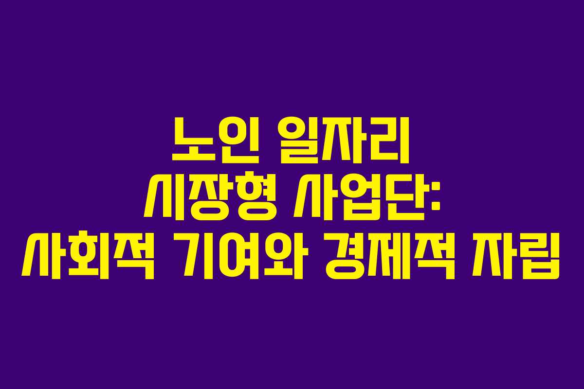 노인 일자리 시장형 사업단: 사회적 기여와 경제적 자립