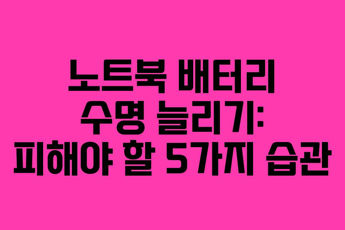 노트북은 휴대성이 뛰어나지만, 배터리 관리가 소홀해지면 사용 시간이 줄어들 수 있습니다. 2025년 최신 정보에 따르면, 우리의 작은 습관들이 노트북 배터리 수명에 큰 영향을 미친다고 합니다. 이번 글에서는 배터리 수명을 단축시키는 치명적인 습관 5가지와 이를 개선할 수 있는 효과적인 방법을 소개합니다.
