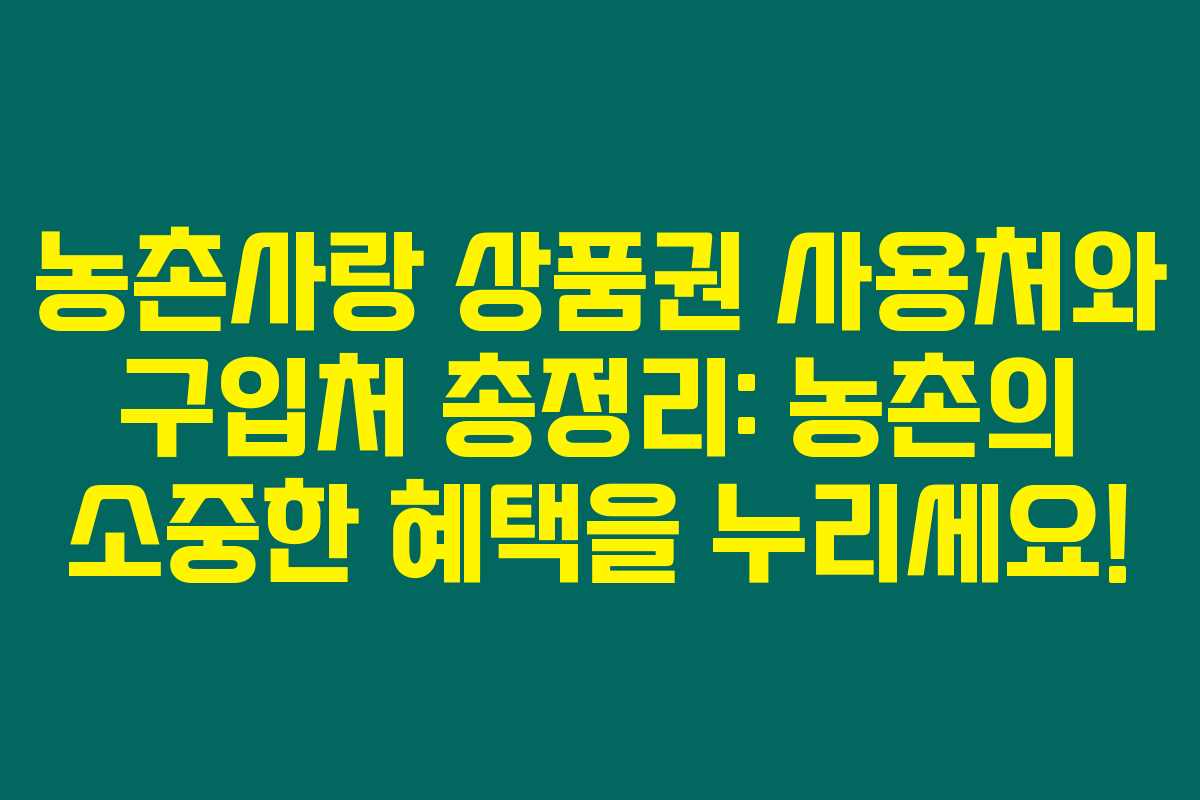 제가 직접 리서치한 바로는, ‘농촌사랑 상품권’은 다양한 장소에서 사용이 가능하여 지역 농산물 및 생활용품을 구매하는 데 큰 장점이 있다고 합니다. 이 글에서는 농촌사랑 상품권의 사용처, 구입처, 현금 교환 방법 등 유용한 정보를 총정리해보았어요. 아래를 읽어보시면 많은 도움이 될 거예요.