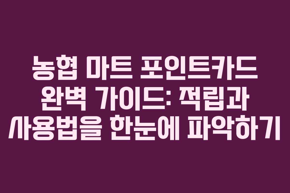 핵심 키워드: 농협 마트 포인트카드, 포인트 적립, 포인트 사용, 앱 연동, 유효기간