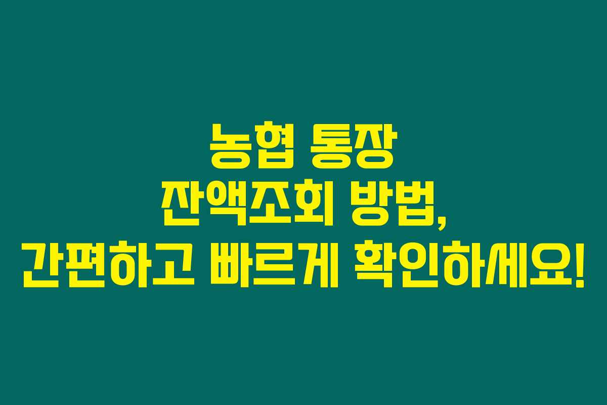 농협 통장 잔액은 언제 어디서나 손쉽게 확인할 수 있는 방법이 많답니다. ARS 전화, 인터넷뱅킹, 모바일뱅킹 등을 이용하면 항상 내 자산 상태를 파악할 수 있는데요. 당신도 이제 아래를 읽어보시면 농협 통장 잔액을 조회하는 다양한 방법에 대해 알게 될 거예요!