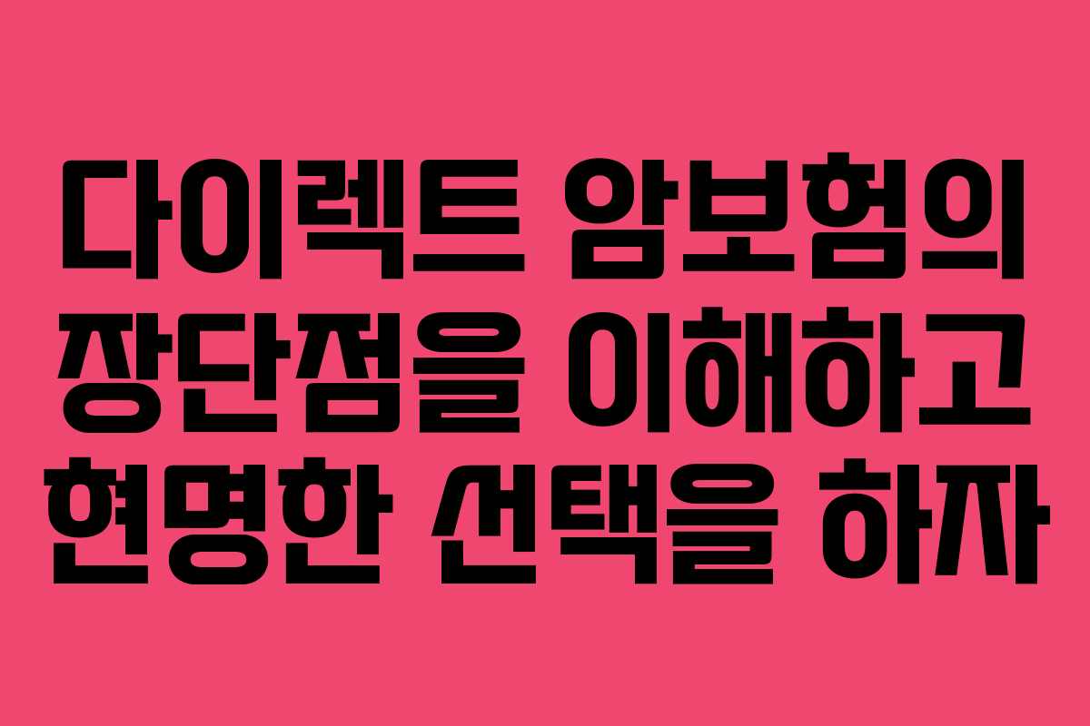 많은 사람들이 암보험 가입을 고민할 때, 저렴한 다이렉트 상품에 대한 관심이 높아지고 있다. 인터넷에서 쉽게 찾아볼 수 있는 다이렉트 암보험은 가격이 매력적이지만, 실제로 그 보장이 얼마나 괜찮은지에 대한 우려가 따른다. 본문에서는 다이렉트 암보험의 장단점을 살펴보며, 올바른 선택을 위한 정보를 제공하고자 한다.