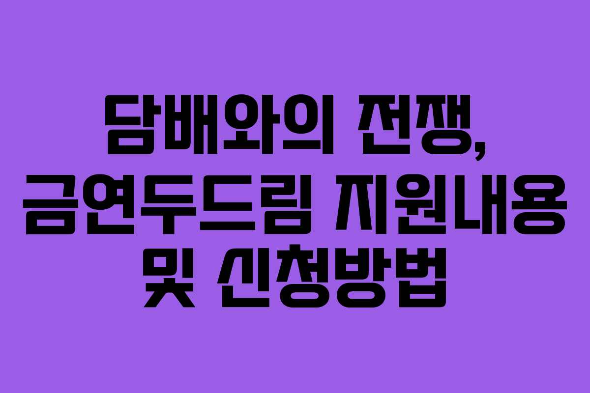흡연을 끊고자 하는 많은 분들이 있지만, 적절한 방법을 몰라 어려움을 겪고 있습니다. 정부의 금연두드림 프로그램을 통해 필요한 도움을 받아 금연에 성공할 수 있습니다. 이번 글에서는 금연두드림의 지원 내용과 신청 방법에 대해 자세히 알아보겠습니다.