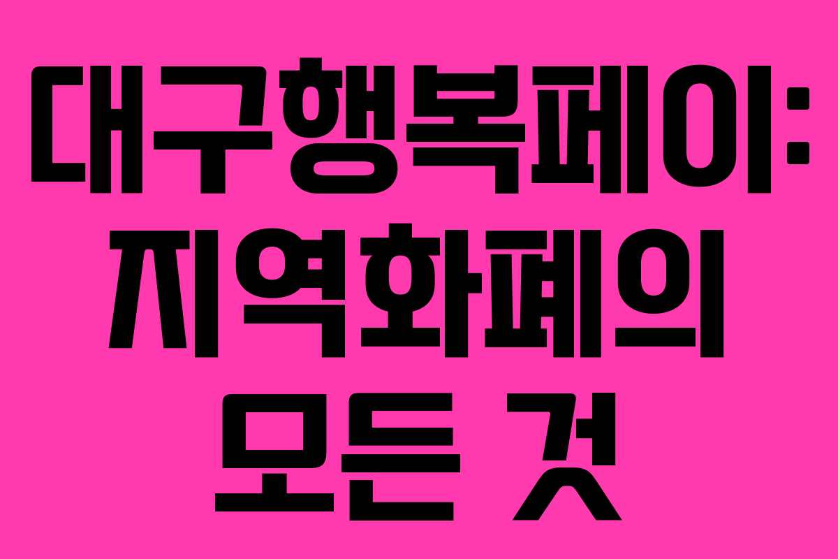 대구행복페이는 대구에서 사용되는 지역화폐로, 지역 경제의 활성화와 시민의 행복을 추구하는 다양한 혜택을 제공합니다. 이번 글에서는 대구행복페이의 특징, 신청 방법, 이용 방법, 그리고 제공되는 혜택에 대해 자세히 알아보겠습니다.
