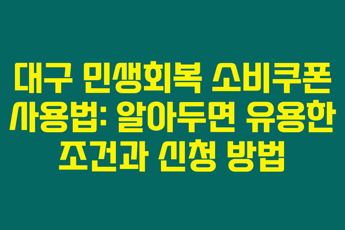 제가 직접 체크해본 바로는, 2025년 대구에서 민생회복을 위한 소비쿠폰이 지급된다 하네요. 이번 지원 정책이 많은 시민들에게 도움이 될 것으로 보입니다. 다가오는 물가 상승 속에서 대구 시민들께서 혜택을 받을 수 있는 소비쿠폰에 대해 제가 경험한 내용을 바탕으로, 자세히 정리해보겠습니다. 아래를 읽어보시면 신청 조건, 방법, 사용처와 궁금증 해소를 위한 FAQ까지 모두 확인하실 수 있어요.