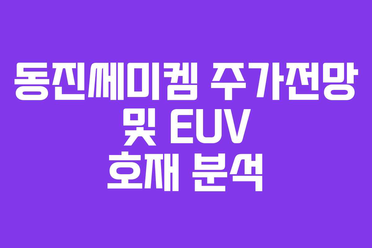 동진쎄미켐은 반도체와 2차 전지 산업에서 중요한 소재를 공급하는 기업으로, 최근 EUV 포토레지스트 개발에 성공하며 주목받고 있습니다. 이 글에서는 동진쎄미켐의 주가 전망과 호재에 대해 자세히 살펴보겠습니다.
