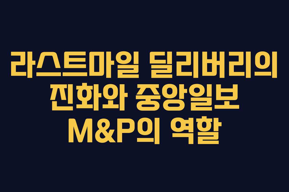 라스트마일 딜리버리는 물류산업에서 가장 중요한 마지막 단계로, 고객에게 상품을 직접 전달하는 과정입니다. 중앙일보 M&P는 57년간의 신문 배달 경험을 바탕으로 이 분야에서의 전문성을 쌓아왔습니다.