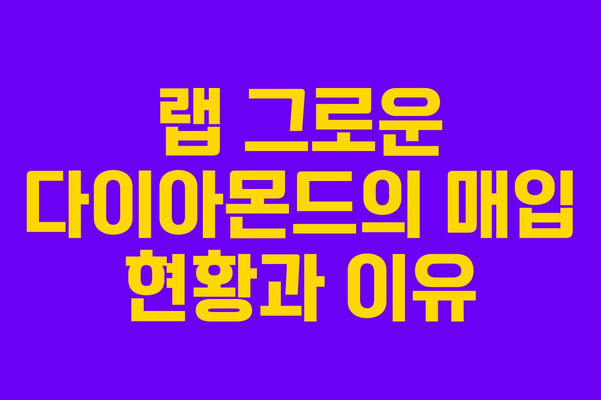랩 그로운 다이아몬드는 실험실에서 인공적으로 생성된 다이아몬드입니다. 자연에서 형성된 천연 다이아몬드와는 달리, 합성 보석으로 분류되며, 2019년부터 국내에서 정식으로 판매되기 시작했습니다.