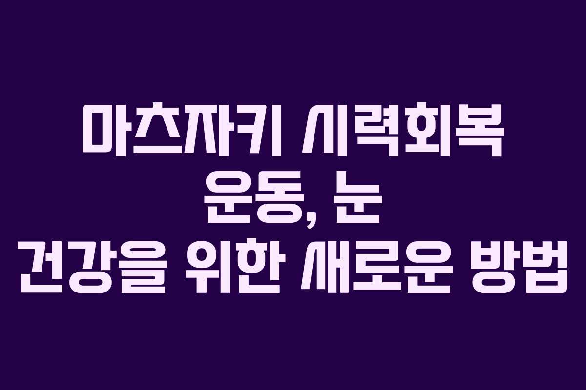 마츠자키 씨가 제안하는 시력 회복 운동법은 다음과 같습니다. 이 운동들은 눈 근육의 강화와 유연성을 높이는데 효과적입니다.