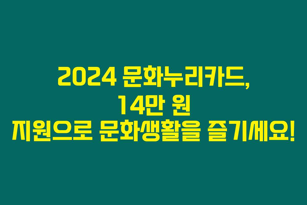 마무리하자면, 문화누리카드는 그저 금액의 증가에 그치지 않고, 우리의 문화생활을 풍요롭게 해주는 중요한 지원제도입니다. 2024년에는 14만 원의 행복을 통해 다채로운 문화 경험을 만들어보세요. 문화누리카드로 여러분의 일상에 색채를 더해보시길 바랍니다!