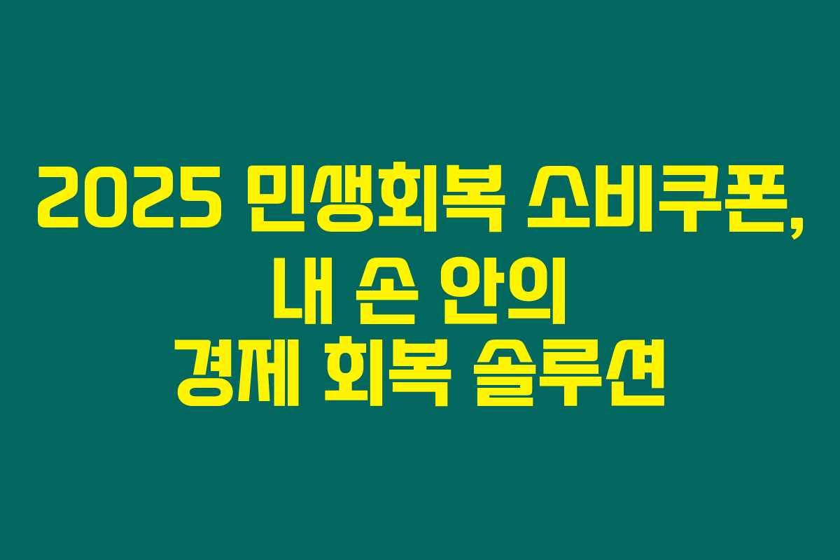 2025 민생회복 소비쿠폰에 관한 정보를 통해 여러분의 경제 생활이 더욱 풍요로워지길 바랍니다.