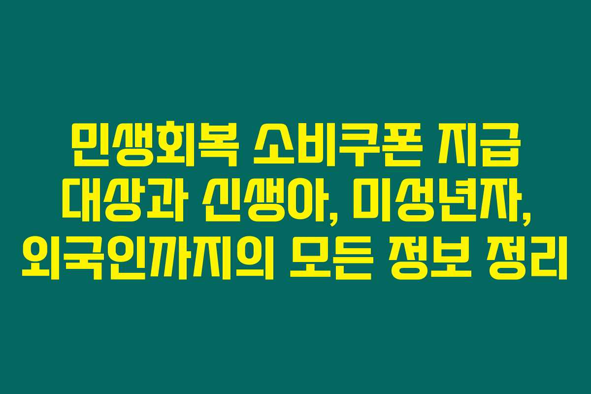 민생회복 소비쿠폰 지급 대상에 대한 모든 정보를 정리했어요. 자녀, 미성년자, 신생아, 외국인까지 모두 혜택을 누릴 수 있는 정책이니, 꼭 신청하셔서 지역 경제에 보탬이 되길 바랍니다. 😊