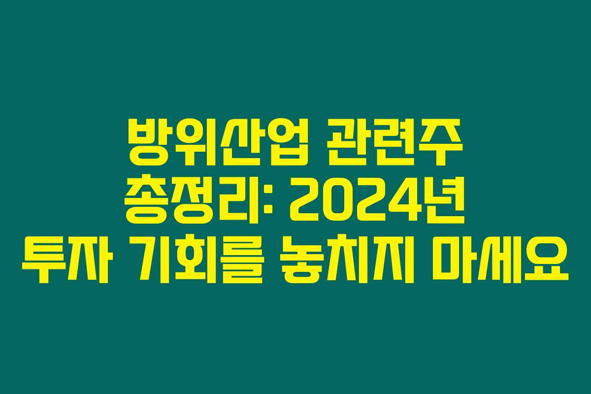 2024년 방위산업 관련주에 대한 관심이 모이고 있습니다. 글로벌 긴장이 고조되고 있는 가운데 방위산업과 관련된 기업들이 투자자들에게 주목받고 있죠. 방위산업에 관심이 있다면 이 기회를 반드시 체크해야 해요! 아래를 읽어보시면 방위산업 관련 TOP10 기업을 정리해두었답니다.