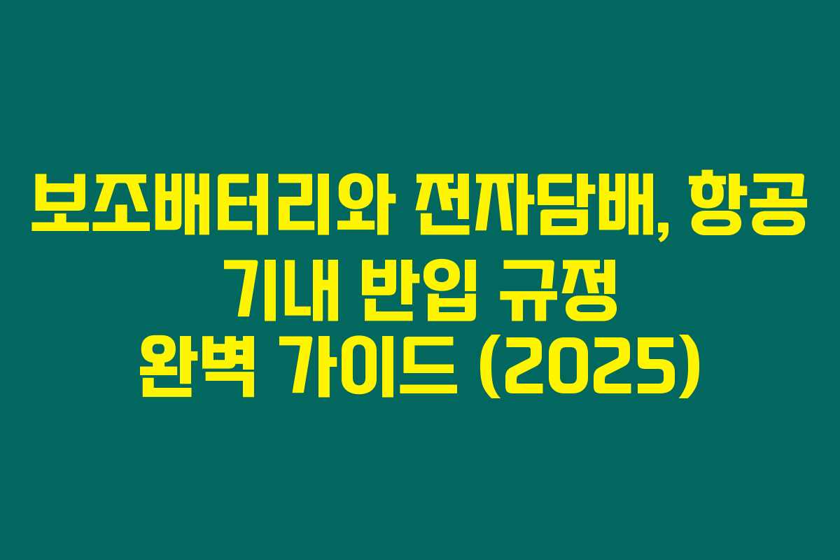 제가 알아본 바로는 2025년부터 보조배터리와 전자담배의 기내 반입 규정이 엄격해졌어요. 특히, 위탁 수하물에 두는 것은 금지되어 있습니다. 이는 최근 기내 화재 사건과 관련이 있으며, 여행 시 필수적인 정보를 제공하기 위해 이번 포스트를 작성했습니다. 아래를 읽어보시면 보조배터리와 전자담배의 기내 반입 규정에 대해 더욱 자세히 알 수 있습니다.