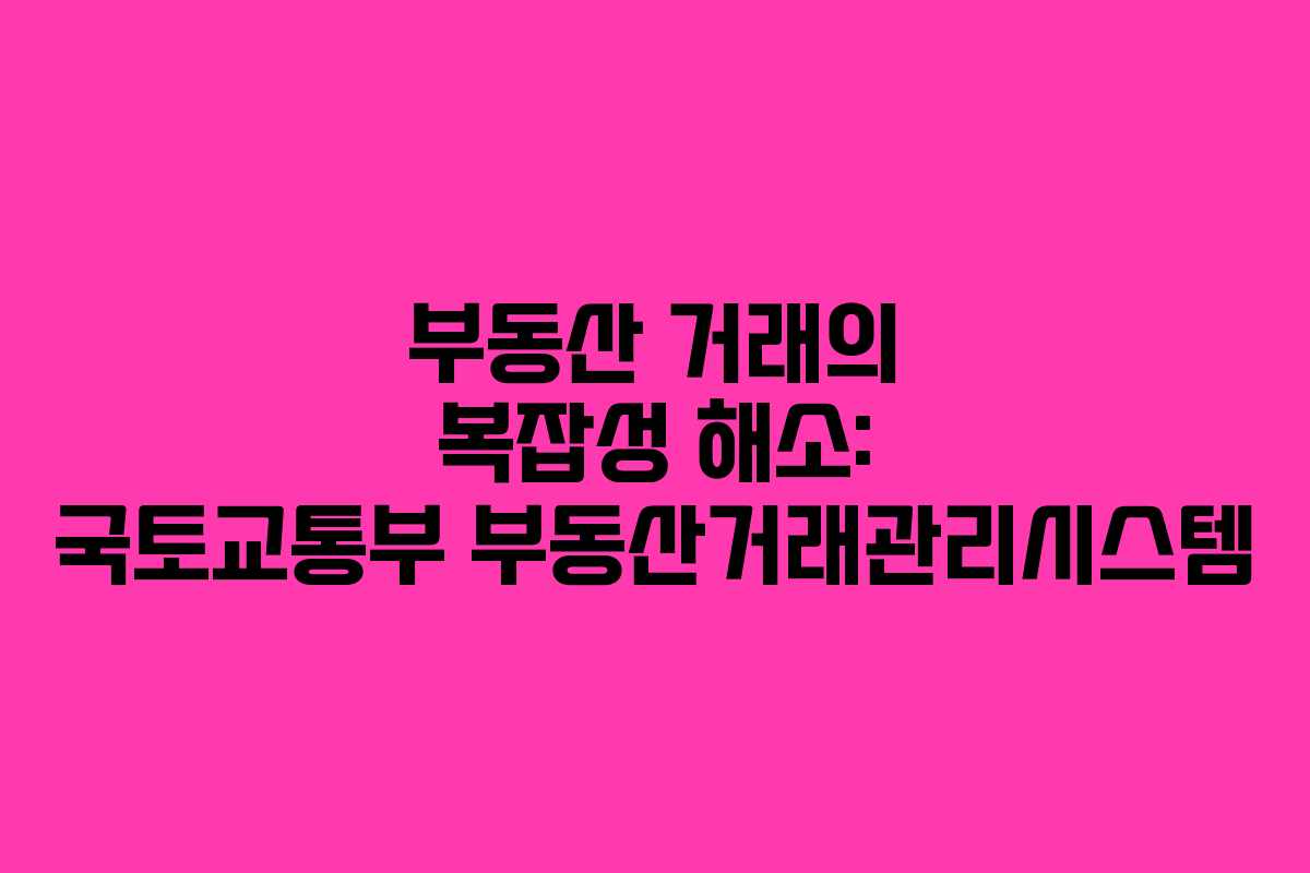 부동산 거래는 많은 이들에게 복잡하고 혼란스러운 과정으로 인식됩니다. 특히 처음 거래를 경험하는 경우, 필요한 문서와 절차, 가격 정보의 불투명성, 법적 문제 등 여러 가지 어려움이 존재합니다. 이러한 문제를 해결하기 위해 국토교통부에서 개발한 부동산거래관리시스템이 큰 역할을 하고 있습니다.