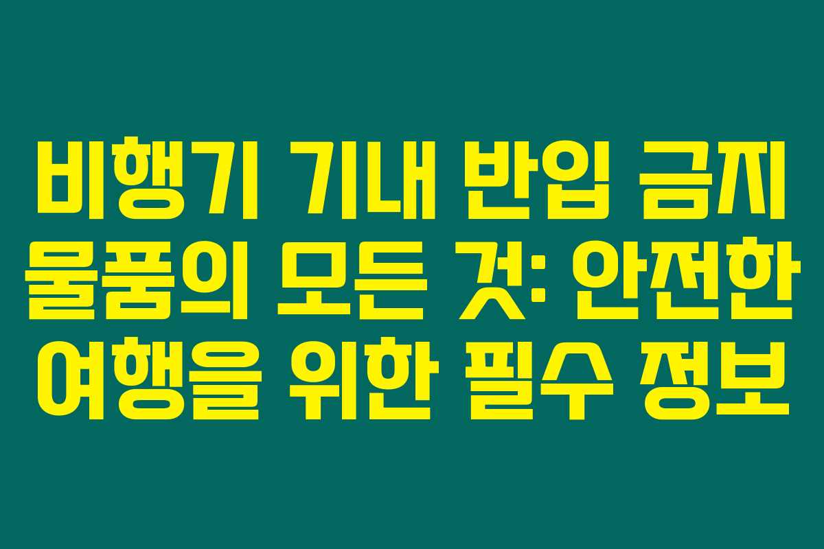 제가 직접 경험해본 결과로는, 비행기를 이용할 때 기내 반입 금지 물품에 대한 이해는 정말 필수적이에요. 기내에 반입이 금지된 물품이 어떤 것들인지 아는 것은 안전한 비행을 보장하고 불필요한 법적 문제를 피하는 데 도움을 줍니다. 아래를 읽어보시면, 기내 반입 금지 물품에 대한 필요한 정보와 체크리스트를 잘 정리해 드리니, 반드시 여행 전에 확인해보세요.