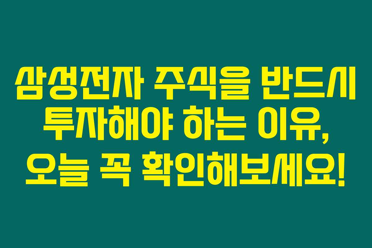 삼성전자 주식을 반드시 투자해야 하는 이유, 오늘 꼭 확인해보세요!