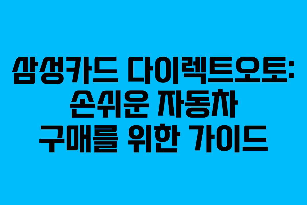 삼성카드 다이렉트오토: 손쉬운 자동차 구매를 위한 가이드