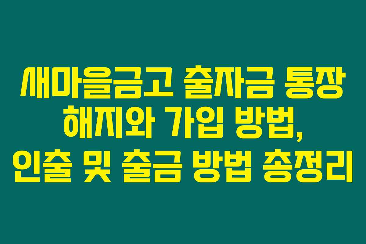 새마을금고의 출자금 통장 해지 및 가입하는 방법에 대해 궁금하시죠?