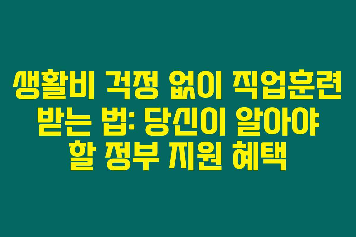 생활비 걱정 없이 직업훈련 받는 법: 당신이 알아야 할 정부 지원 혜택
