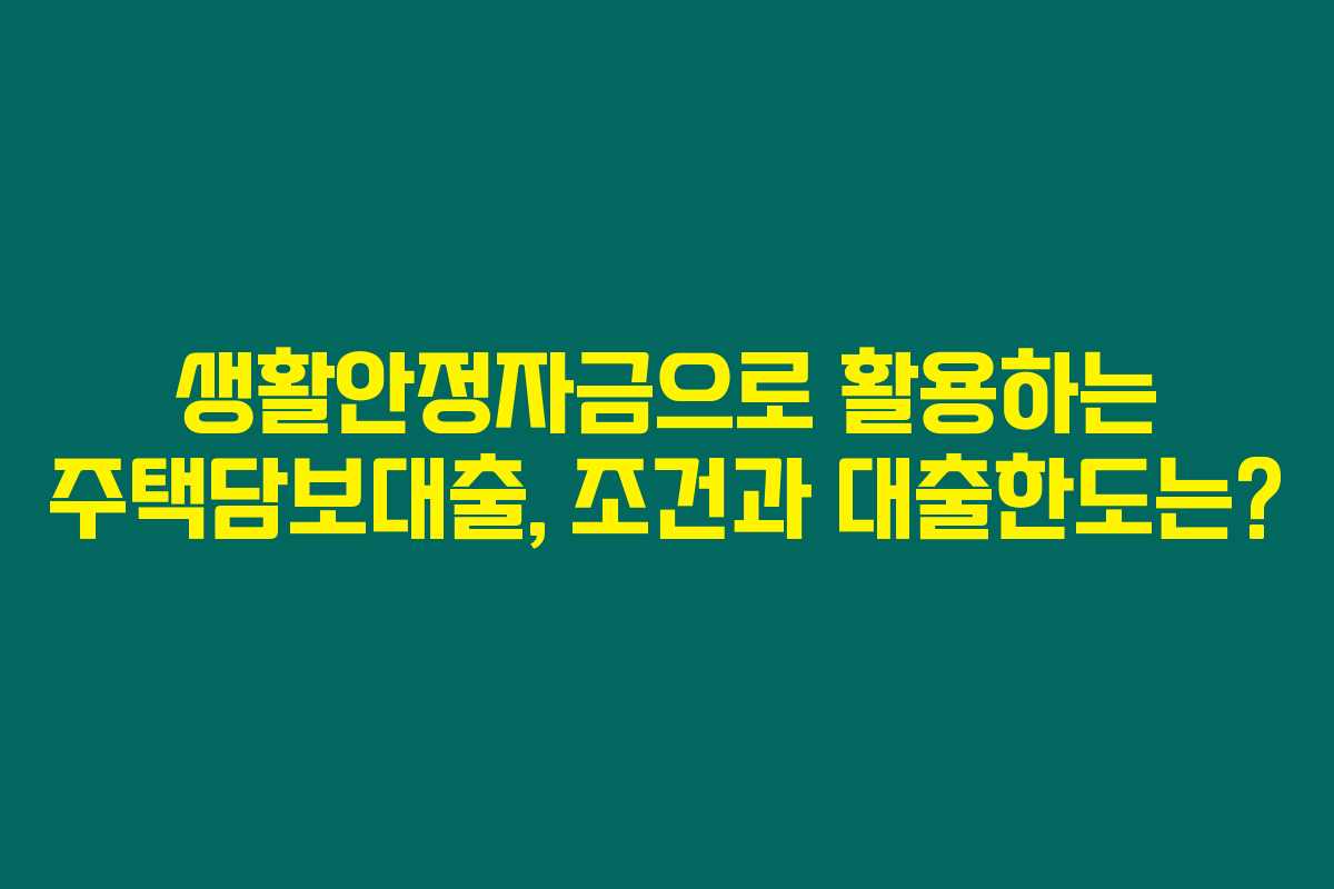 주택담보대출이란, 보유하고 있는 주택을 담보로 하여 대출을 받는 것을 말해요. 보통 집을 사기 위해서라기보다는 이미 보유한 주택을 통해 생활안정자금을 마련하려는 목적으로도 많이 활용되고 있습니다. 제가 최근에 확인해본 결과, 생활안정자금으로 주택담보대출을 받을 수 있는 여러 조건과 규정이 있어요.